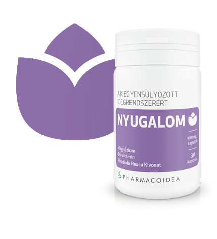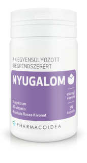 A stressz leküzdésében a megfelelő testmozgásnak és a változatos, kiegyensúlyozott étrendnek jelentős szerepe van. A stressz természetes leküzdéséhez az ún adaptogén gyógynövényeknek óriási segítséget nyújtanak. Ezek közül a leghatékonyabb a Rhodiola rosea a leghatékonyabb adaptogén gyógynövények egyike, amely hozzásegíti a szervezetet a külső ingerek hatékony feldolgozásához. Mivel a Rhodiola mind a fizikai, mind a szellemi teljesítményt növeli, így szedésével a stressz okozta testi és szellemi tünetek is csökkennek. A nyugtató gyógynövényekkel (macskagyökér, komló, citromfű) szemben a Rhodiola nem tompítja az idegrendszert: épp ellenkezőleg, a szellemi teljesítőképesség növelésével segít a szellemi feladatok megoldását. Szedésével így megelőzhető a túlzott stresszhatás. A Pharmacoidea NYUGALOM étrend-kiegészítője a Rhodiola speciális kivonatát magnéziummal és B6-vitaminnal elegyíti, hozzásegítve a szervezetet az ideg-, az immun- és a keringési rendszer egészséges működésének fenntartásához, a stressz szellemi és fizikai tüneteinek csökkentéséhez. A szervezet kiegyensúlyozott működésének biztosításával így Pharmacoidea NYUGALOM elejét veszi az alvászavarban, pánikrohamokban testet öltő szellemi feszültségnek és a stressz már részletezett egészségkárosító hatásainak. Mivel a szellemi működést nem tompítja, így Pharmacoidea NYUGALOM nagy figyelmet igénylő munkakörökhöz és a vezetéshez is kiválóan alkalmas. A Pharmacoidea NYUGALOM speciális, tudományosan igazolt hatású összetételének köszönhetően így ideális a szervezet optimális működésének biztosítására és a minket érő stresszhatások természetes leküzdésére. A vény nélkül kapható Pharmacoidea NYUGALOM mindezt mindenfajta mellékhatás nélkül biztosítja.